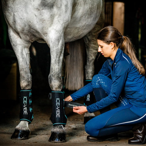 Ice-Vibe boots use a neoprene outer with elasticated inner pockets for the vibration panels, soft binding and secure Velcro fastenings to prevent slipping. Contoured to fit the lower leg, Ice-Vibe boots can be used on both front and hind legs. Easy to use, first wrap the cold packs around the leg, then place the boots on top. Ensure your vibration panels are in the preferred pocket if you wish to target a specific area and always flat side of the panel to the horse's leg.